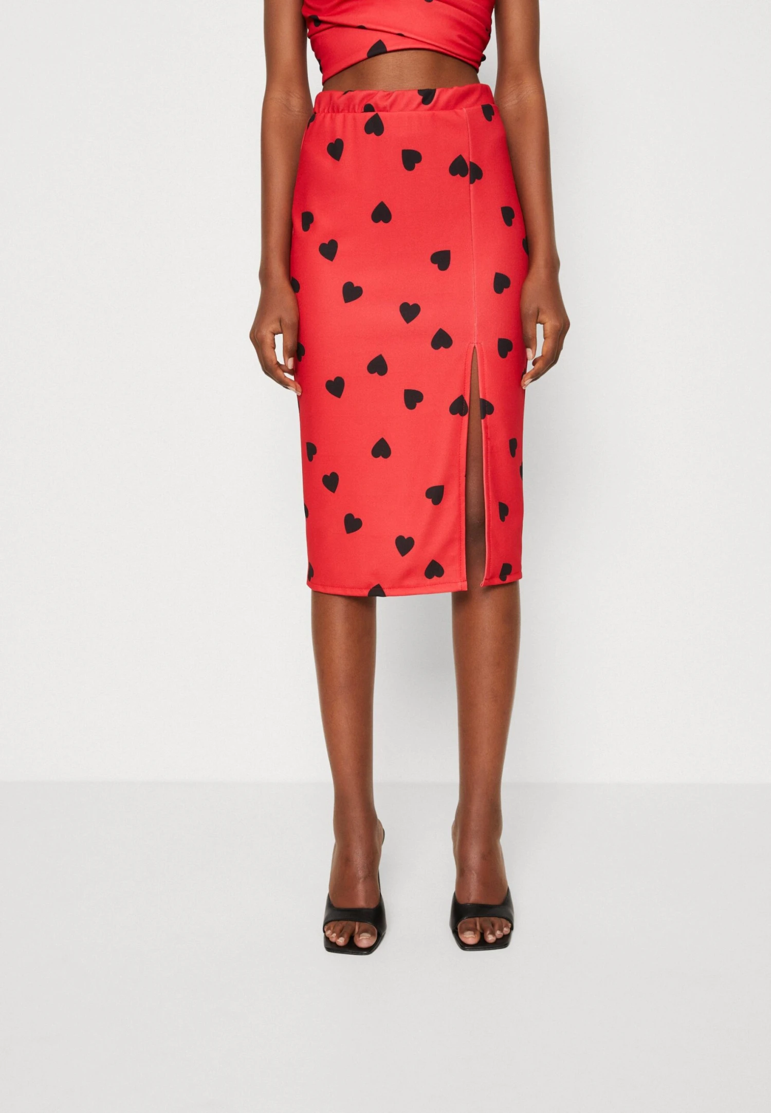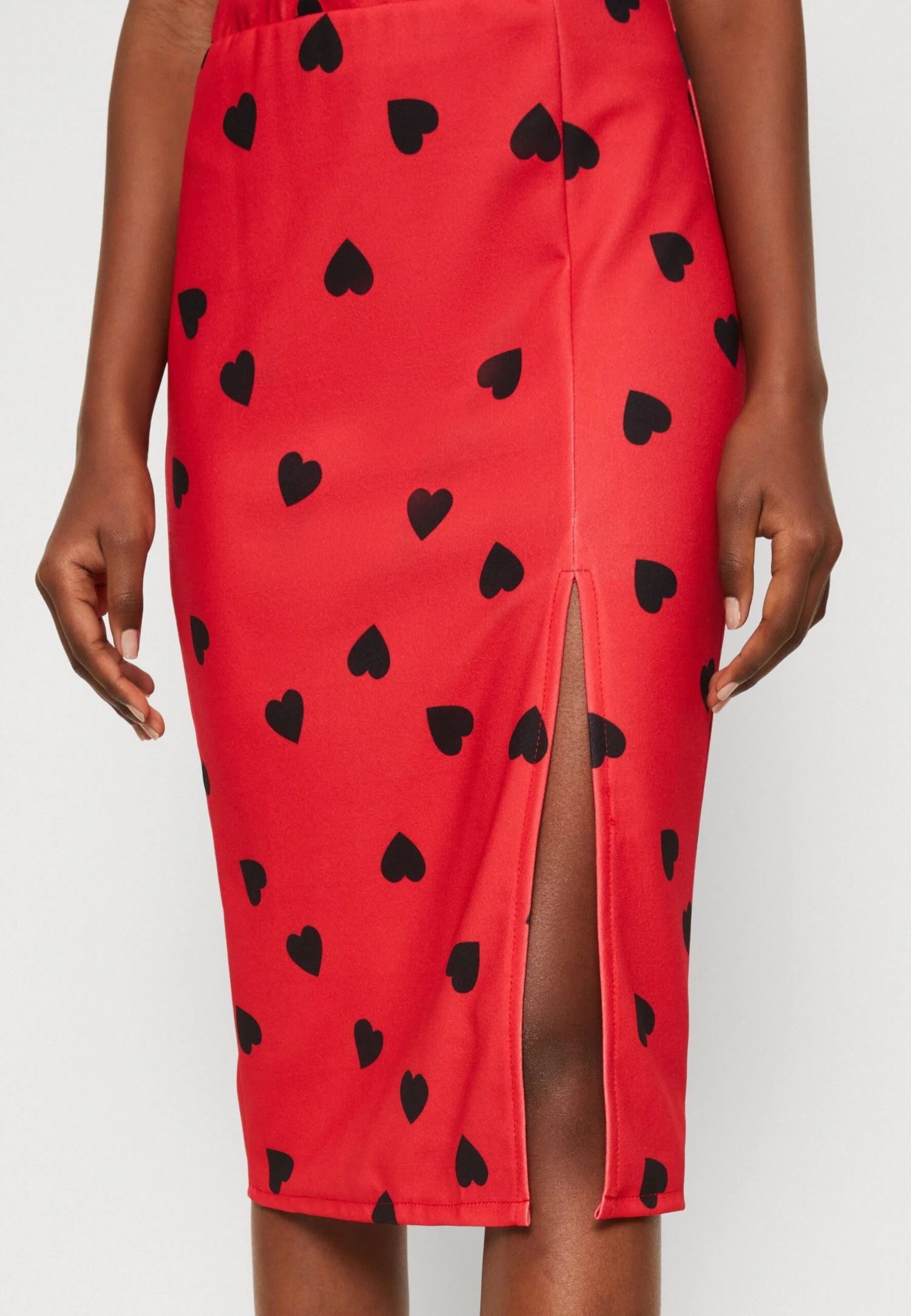 Wal G Valentines Heart Midi Skirt – Jupe Crayon – Red/Black
